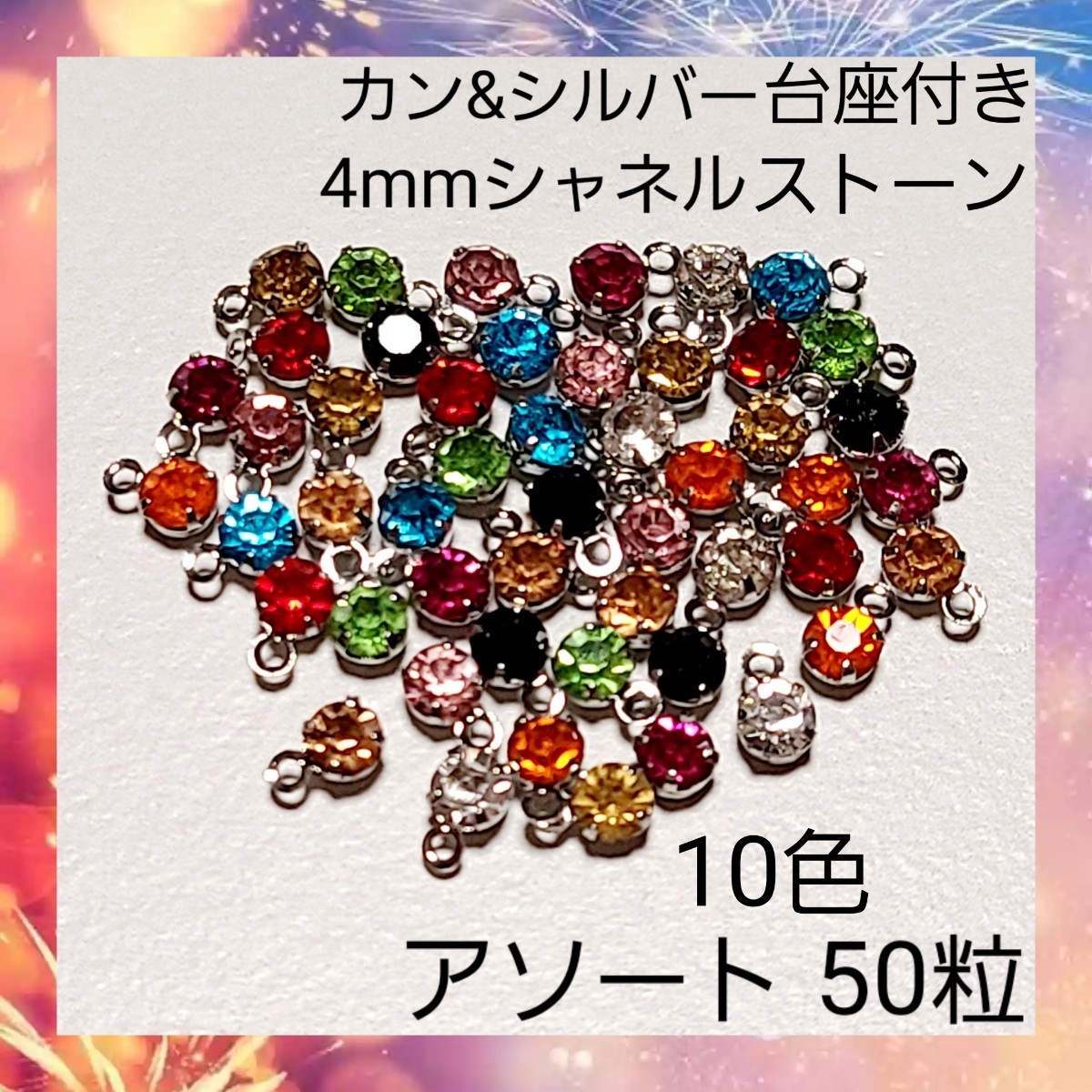 - 【ハンドメイドパーツ】シルバー 台座付き シャネルストーン チャーム 50個 1