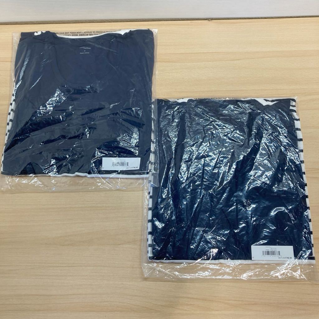 > 新品 [Daily Ritual] マルチパック Aラインシルエット Tシャツ スクープネック ネイビー/ホワイトストライプ 半袖 M 4枚セット(73)