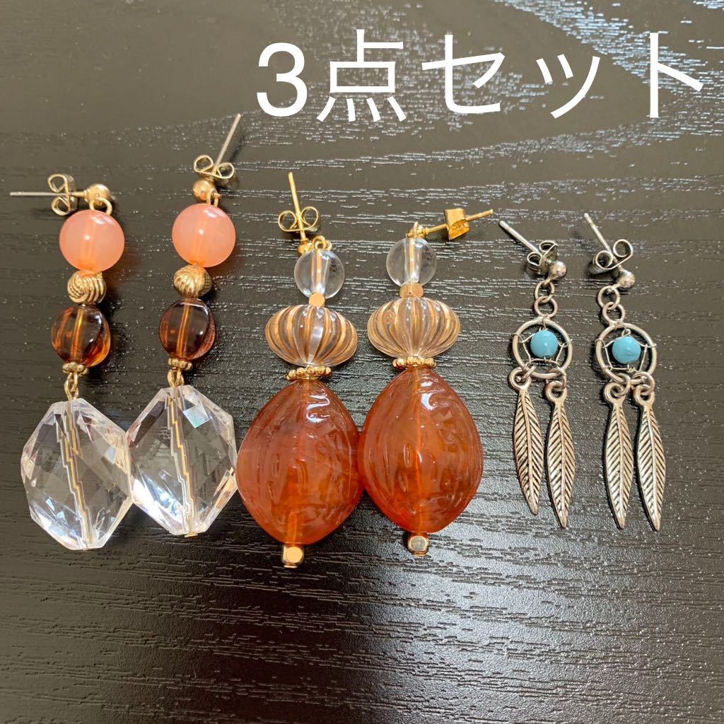 - 大人 秋色 ビジュー ドリームキャッチャー ビーズ ピアス 3点セット