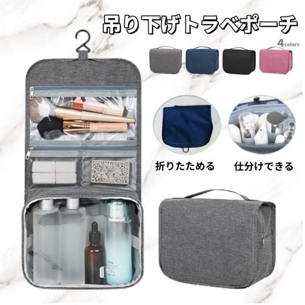 - トラベルポーチ 吊り下げ 旅行 ポーチ コスメポーチ メイク 化粧品 ポーチ トラベルグッズ バッグインバッグ ネイビー ZK0015