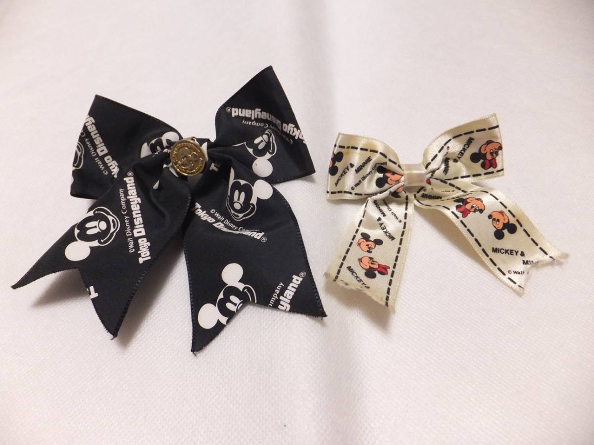 - ディズニー ヘアアクセサリー 2点 ミッキー ミニー ディズニーランド レトロ リボン バレッタ