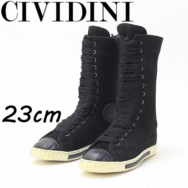 > 新品 定価10万↑◆CIVIDINI チヴィディーニ 裏地ムートン ショーレース ジップアップ ハイカット スニーカー シューズ 黒 ブラック 36