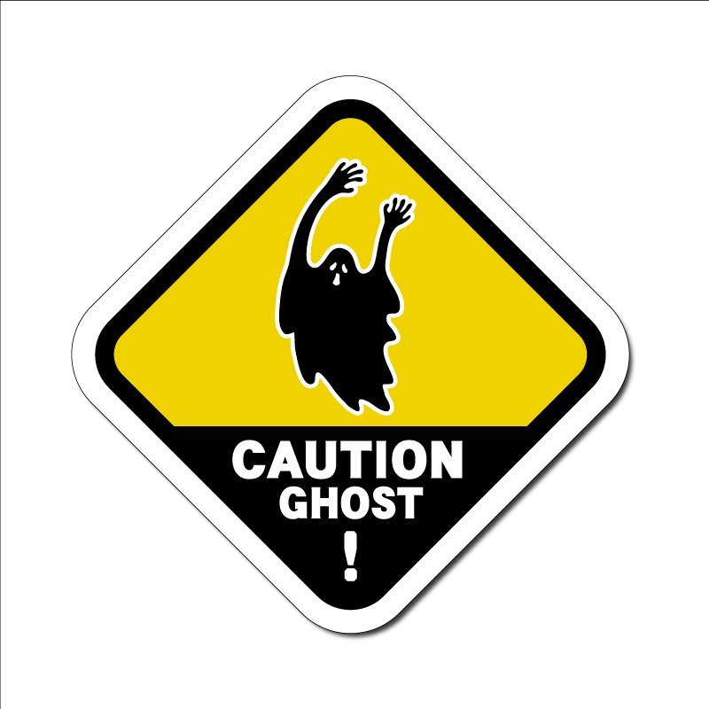 - (反射)おもしろステッカー ゴースト出没注意 イエロー 6.5cm シール シンプル ワンポイント