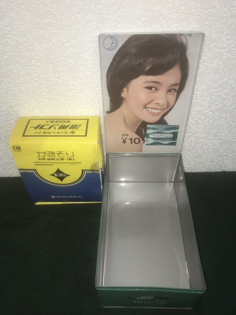 - フェザーシャンプー 花王 ブリキ 缶 昭和レトロ 当時物 由美かおる ニッケン カミソリ 剃刀 No.391