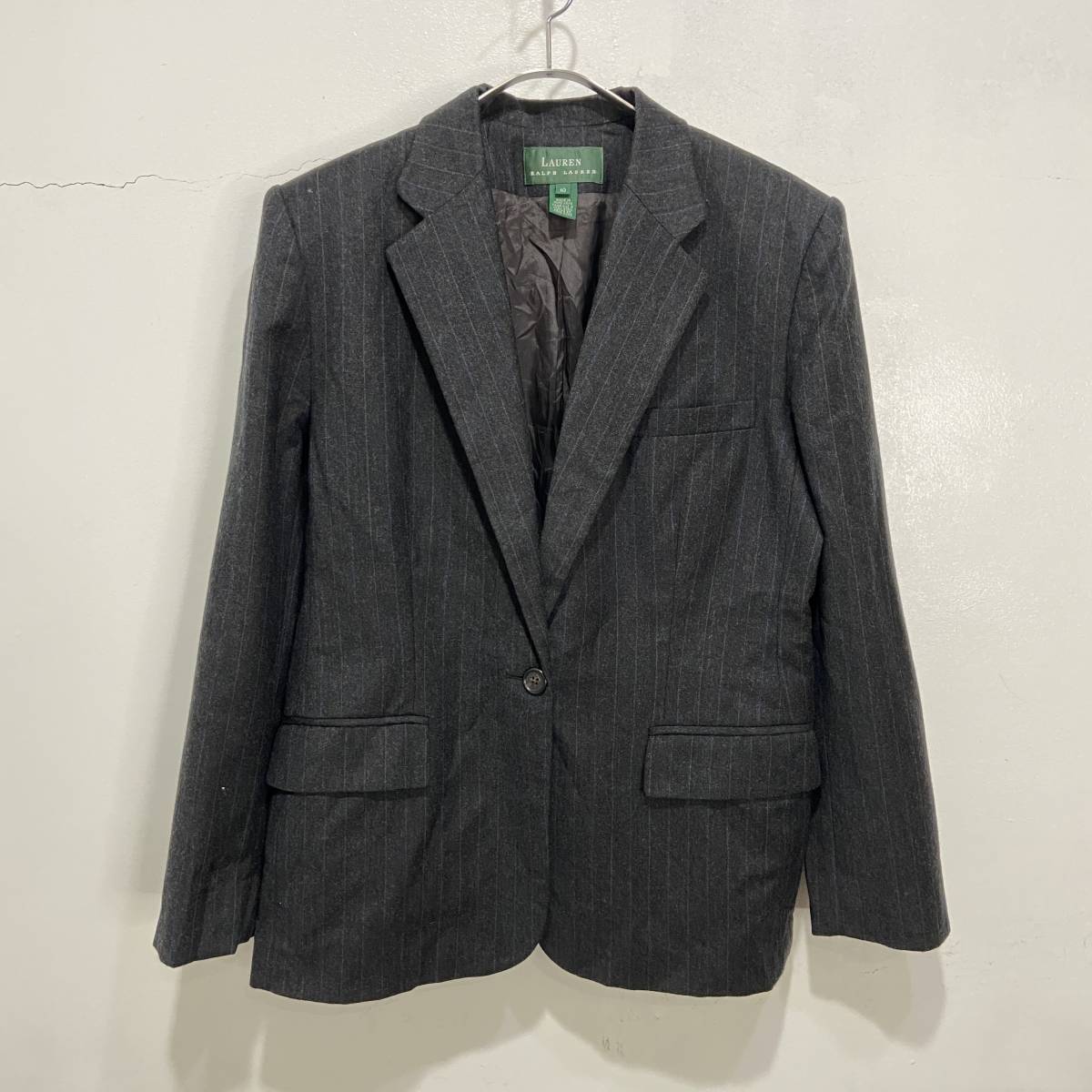 - 送料無料☆ラルフローレン☆ストライプ柄テーラードジャケット☆ウールジャケット☆チャコールグレー☆表記10☆レディースM-L相当☆B24M
