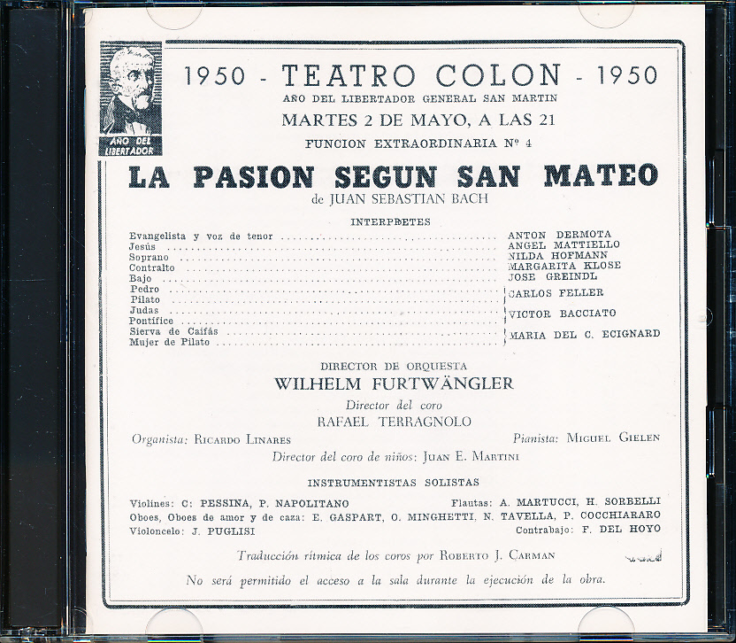 - 日センター盤 J.S.バッハ マタイ受難曲(1950.4.29) フルトヴェングラー/コロン劇場o & cho 2CD