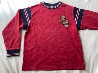 - 着用少★papp★トレーナー★140★胸ワッペン★後ろ首元ロゴ刺繍★ワイン×ネイビー・ホワイトライン★パプ
