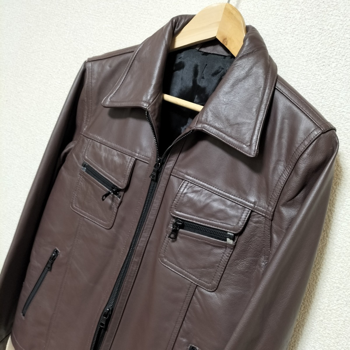 - 希少★no id. レザージャケット ブルゾン ダブルジップアップ アウター メンズ サイズ1 ブラウン 茶 アーカイブ ノーアイディー 古着 USED