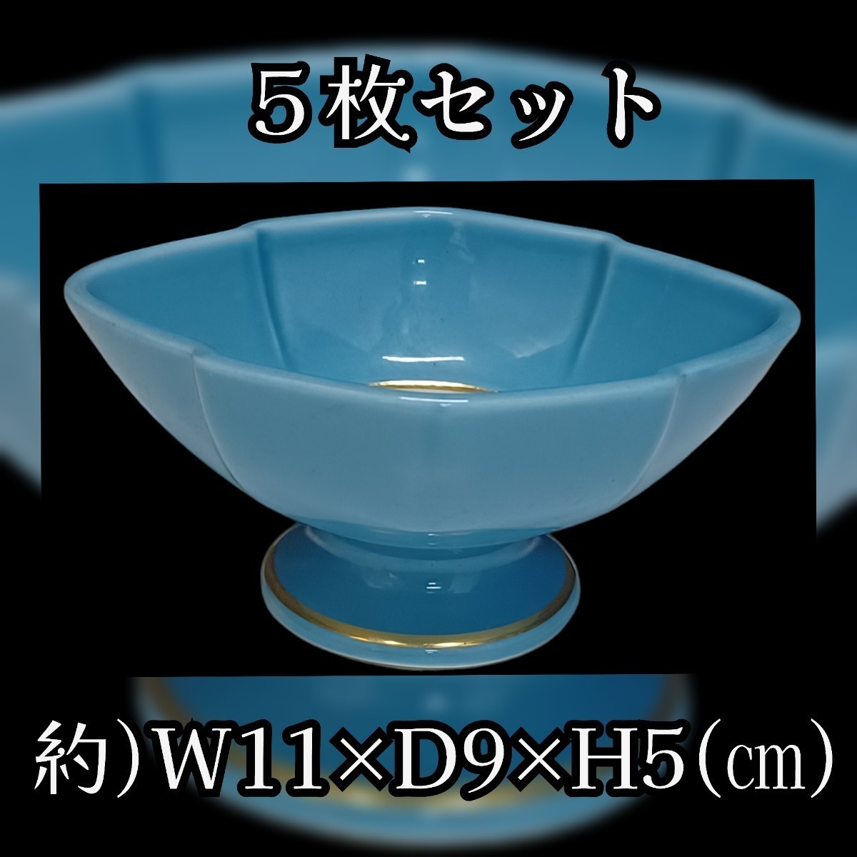- 岩【ラスト5枚】高台皿 高台鉢 ブルー 青 鉢 まとめ売り 和食器 皿 和食 料亭 旅館 割烹 懐石 居酒屋 飲食店 業務用 240216(N-1-3