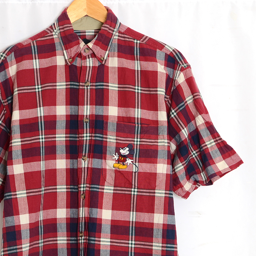 - AA373 ディズニー DISNEY 半袖シャツ L 肩幅50 格子柄 ボタンダウン ミッキー メール便可 xq