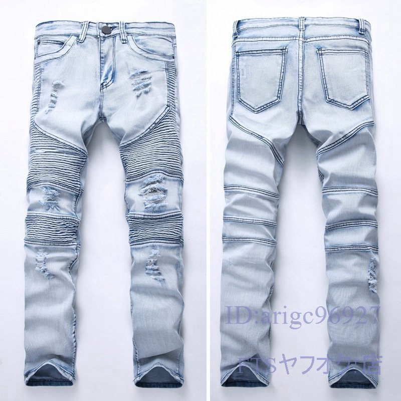 - S867☆新品メンズデニムパンツ ジーンズ カジュアル ダメージ加工 バイクパンツ バイクジーンズ ジーパン 大きいサイズあり ブルー W28~42