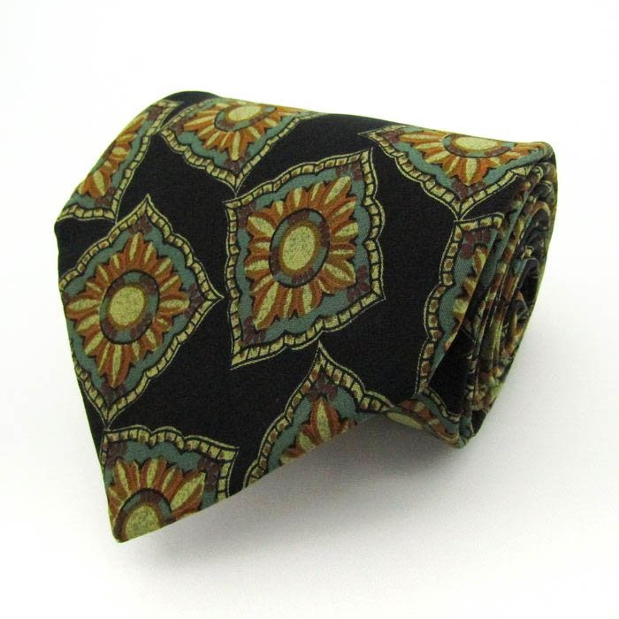 - リキエル オム ブランド ネクタイ 花柄 スクエア柄 パネル柄 シルク フランス製 メンズ ブラック RYKIEL HOMME
