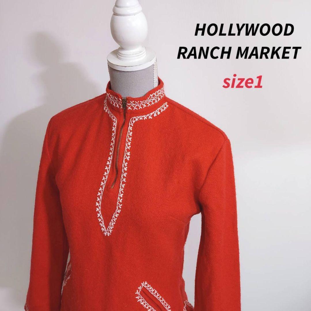 > ハリウッドランチマーケット・チロル風・刺繍デザイン・スタンドカラー・ウール素材トップス 表記サイズ1 S 赤 67016