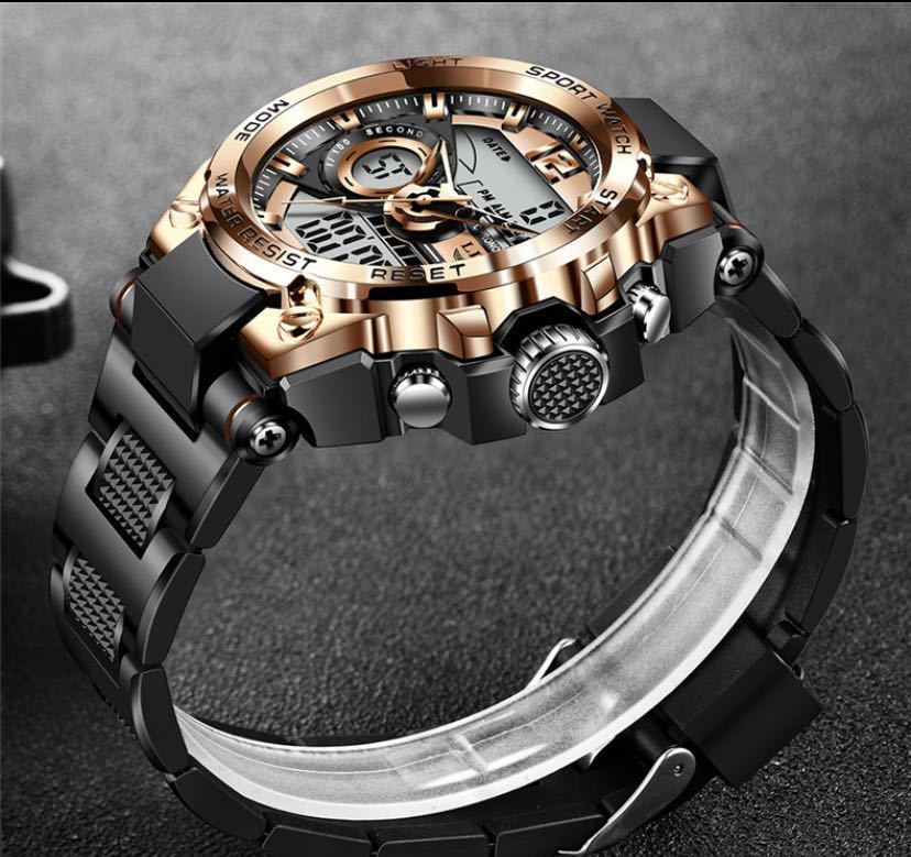 > LDL921# メンズ 腕時計 8922 ゴールド ブラック シルバー 日本製クオーツ 防水 デジタルクロノグラフ