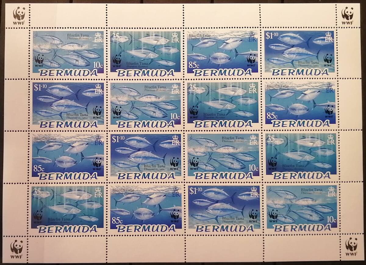 - バミューダ 魚(WWF)(4種(16枚)シート) MNH