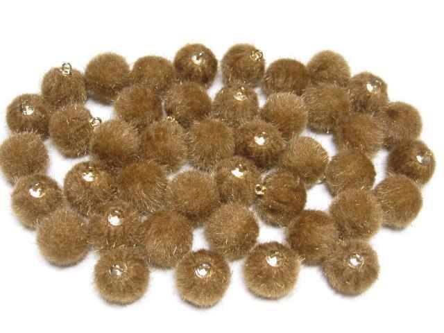 - ファーボール ポンポン チャーム パーツ ブラウン色 20個セット