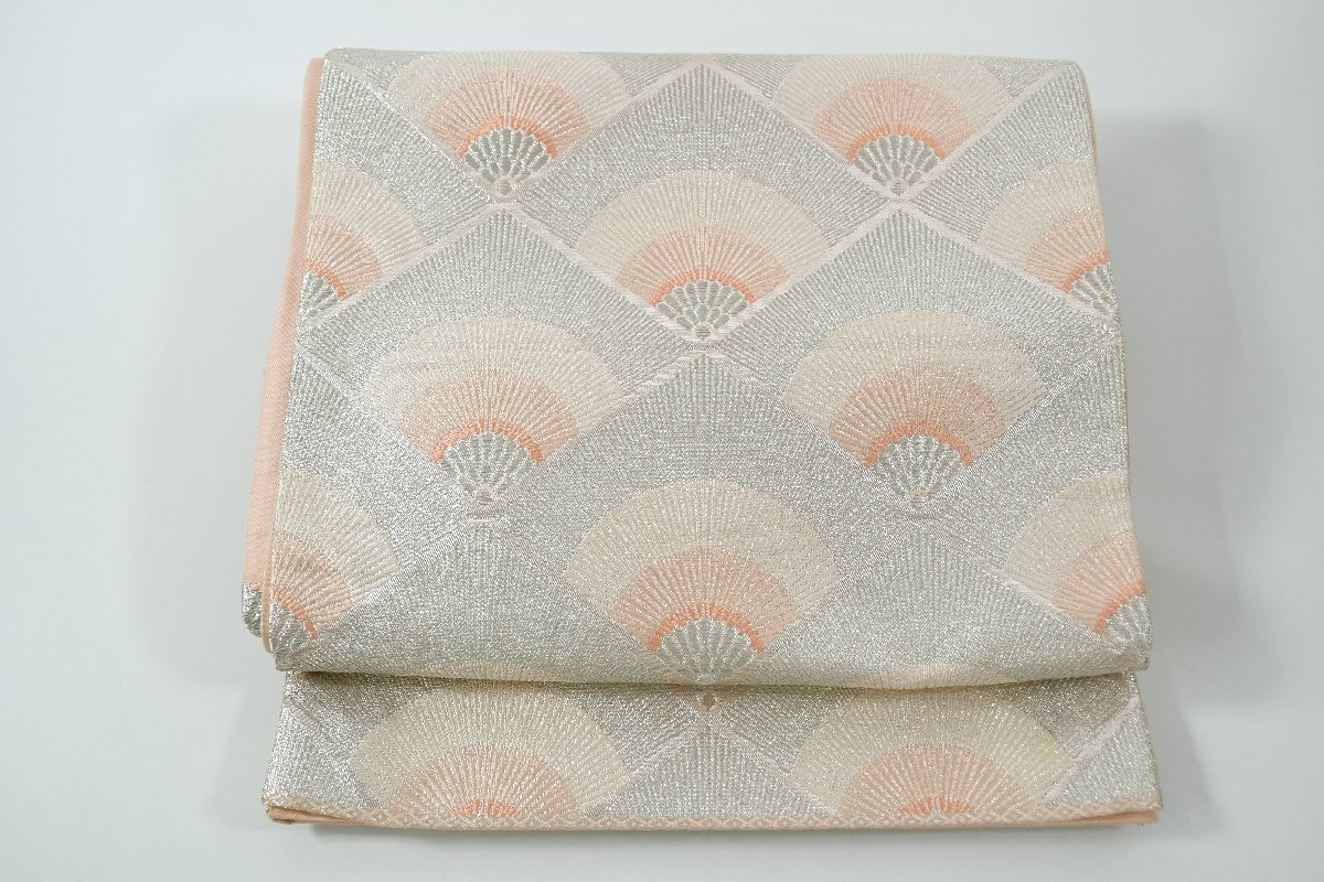 > 袋帯 未仕立て 六通柄 銀糸 菱文 青海波文 帯丈430cm ★着物屋 ne-8032 桜庭呉服店