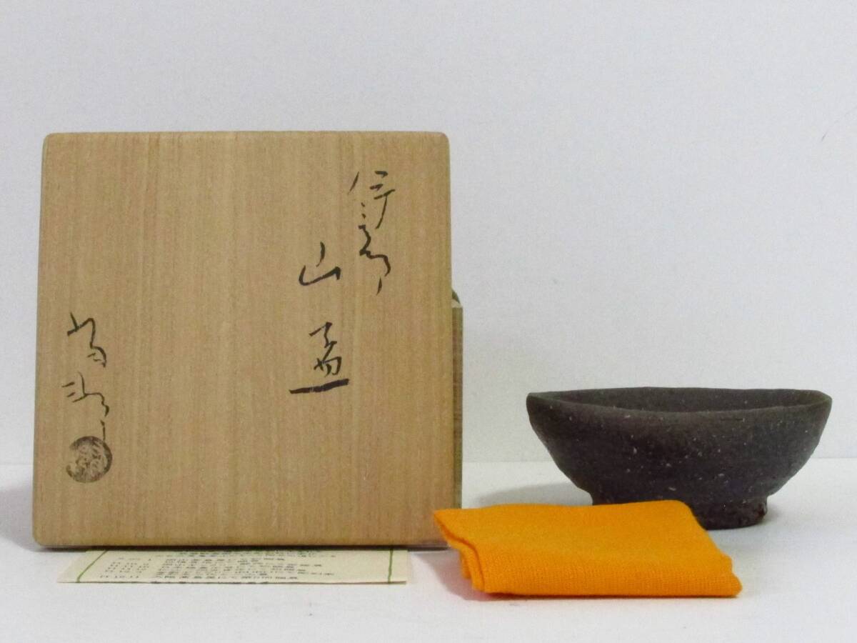 - ○清雅○ 岡山県無形文化財・金重有邦 備前焼 山盃 四方桟共箱 ぐい呑 秀作