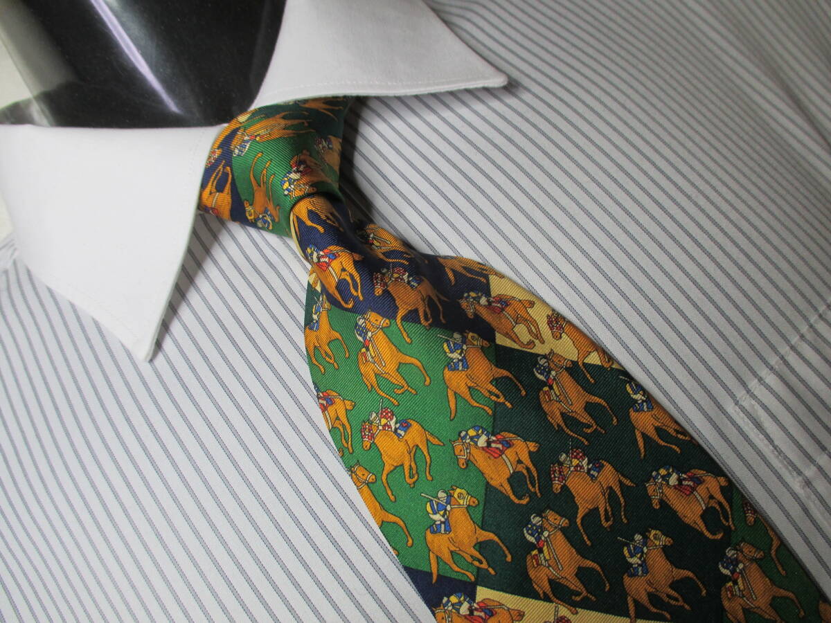 - ◇ロンシャン LONGCHAMP ◇ネクタイ◇中古品◇乗馬の柄・-色系◇第31弾ブランドがいっぱい◇31-155◇