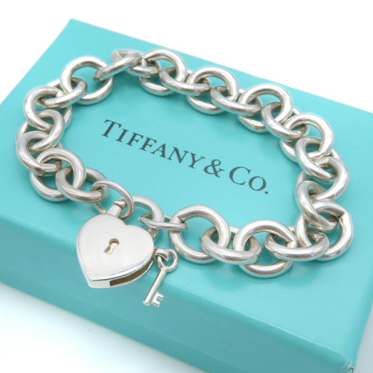 > 美品 Tiffany&Co. ヴィンテージ ティファニー ハート カデナ ロック キー シルバー ブレスレット SV925 ドーナツ チェーン HH302