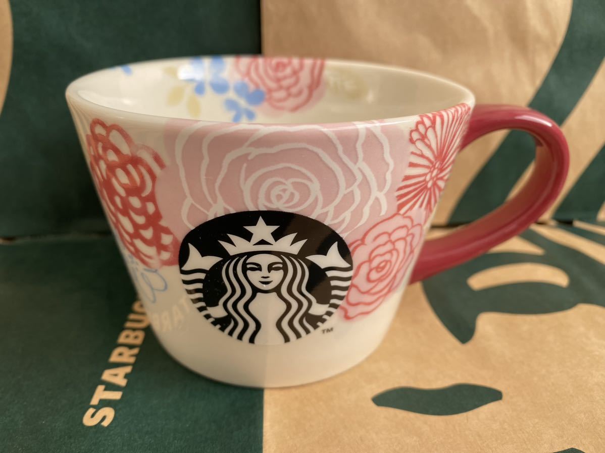 > STARBUCKS スターバックス マグガーデン237ml スタバ 母の日 マグカップ 花柄 薔薇柄 ピンク×白
