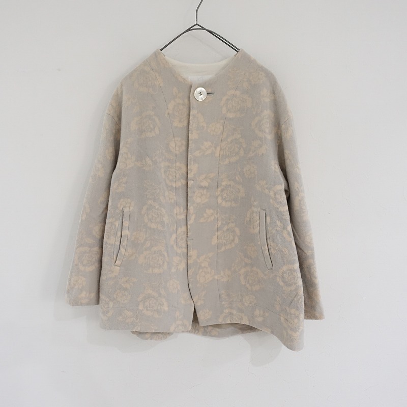 > //【定価6.9万】ガサグルー GASA grue *ウール混ノーカラージャケット*F総柄コート毛混ベージュ裏地起毛(kjk4-2402-74)【10C42】