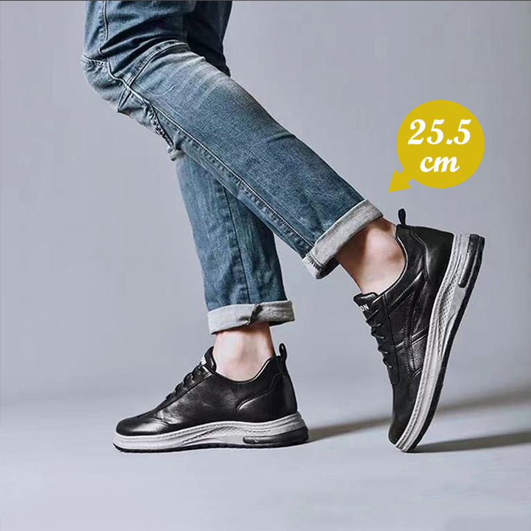 - 男性 靴 メンズ スニーカー 厚底 スポーツ ウォーキング シューズ 滑り止め 黒25.5cm