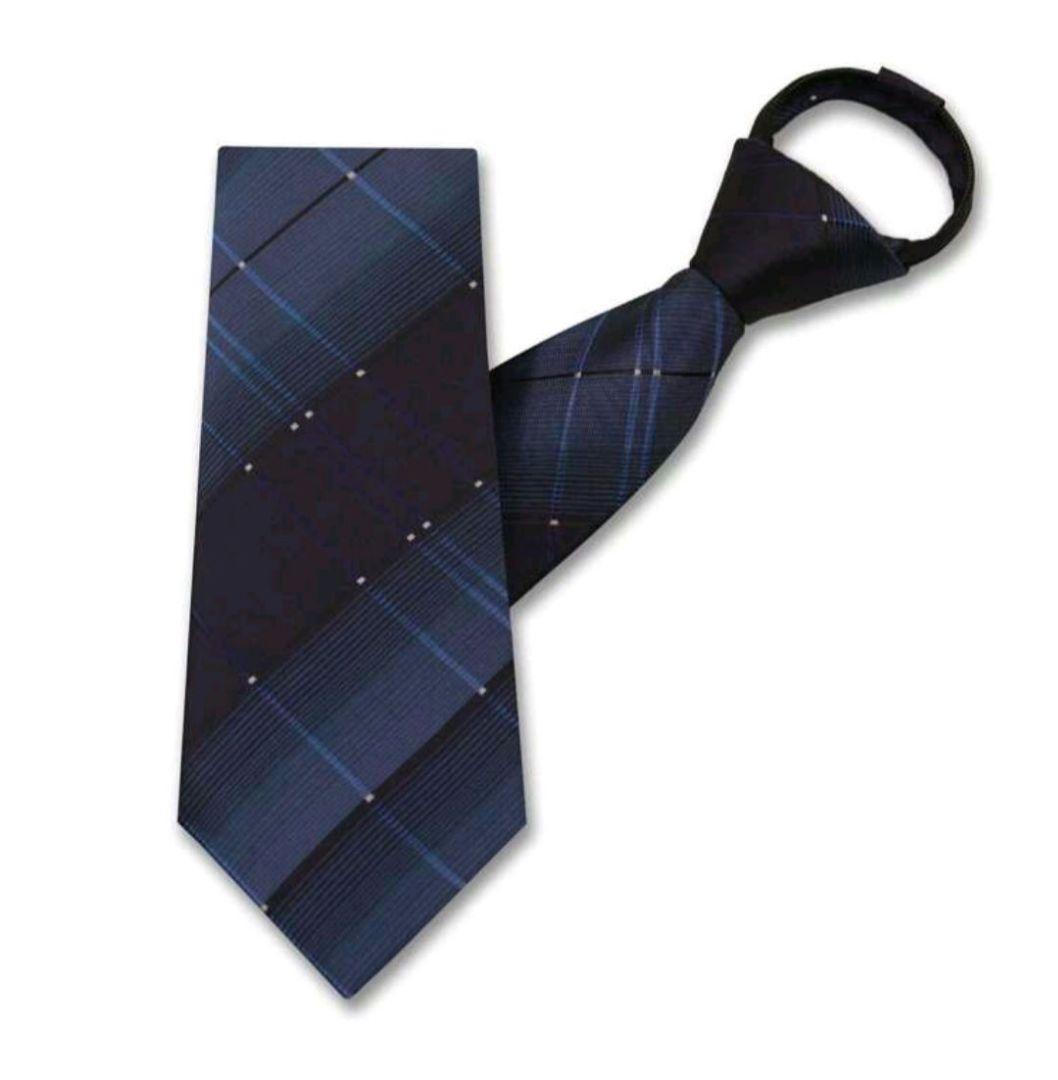 - 【簡単着用】【ネクタイ】格子縞パターン×ブルーネイビー ワンタッチネクタイ