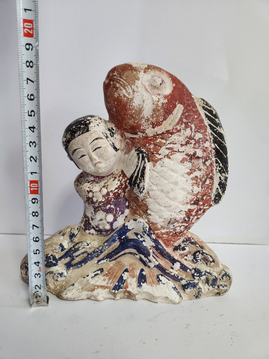 - 古い土人形 花巻人形 鯛持ち童子 郷土玩具 郷土人形 古民芸 【SH-31103】