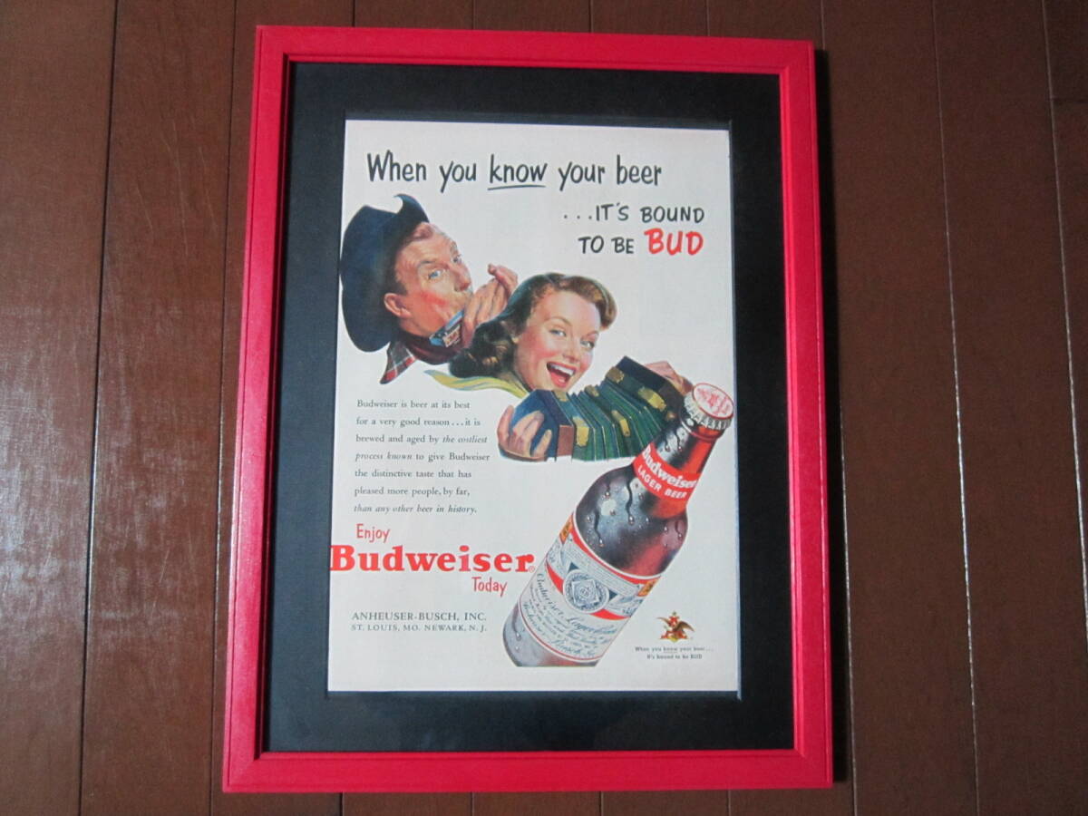 - LIFE紙 ライフ広告 U.S.A「Budweiser」当時物広告「額装、マット仕上げ」(’50s ’60S ミッドセンチュリー )