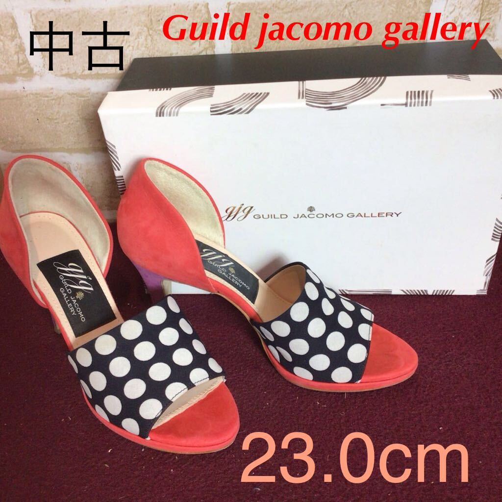 > 【売り切り!送料無料!】A-355 Guild jacomo gallery !サンダル!赤!ドット!23.0cm!スエード!おしゃれ!中古!