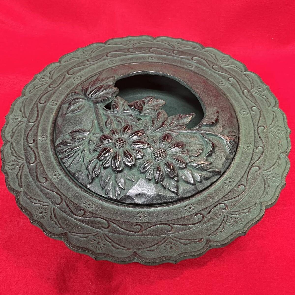 ☆希少☆ ヴィンテージ 美術鋳物 花草紋様 灰皿 昭和レトロ 当時物 煙草 インテリア (03156E