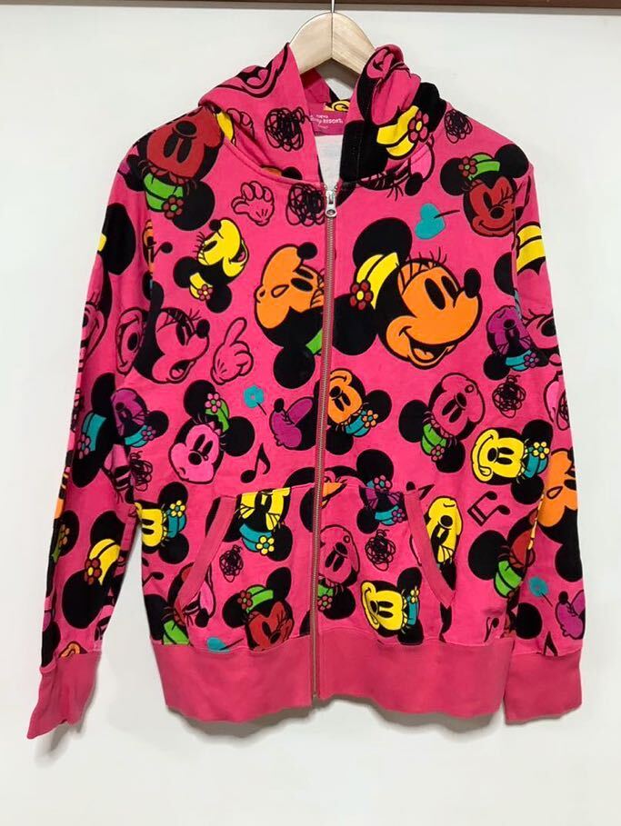 - し1326 TOKYO Disney RESORT 東京ディズニーリゾート 総柄 ジップアップ スウェットパーカー LL ピンク レディース
