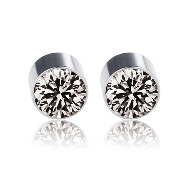 - ステンレス 男女兼用 ユニセックス 穴不要 磁石 ピアス 一粒石 キュービックジルコニア イヤリング 両耳用