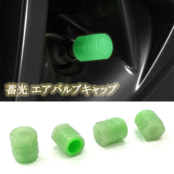 - タイヤ エアーバルブキャップ エア バルブ キャップ 4個セット 車 カー バイク 蓄光 蛍光 グリーン 送料無料