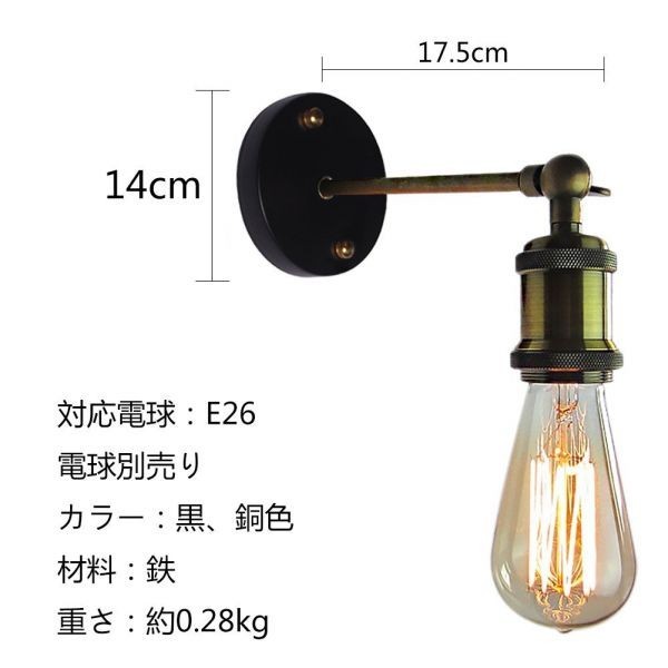 - 【送料無料】Filsae ブラケットライト ウォールライト 玄関ライト アンティーク調 北欧 レトロ おしゃれ E26口金 角度調整可(銅色 1個)