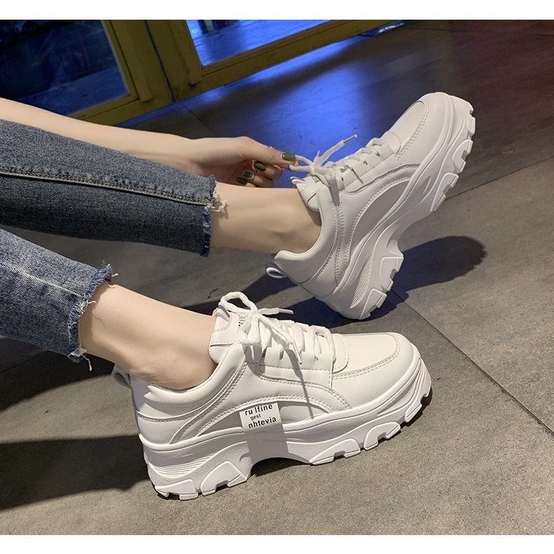 > 【厚底スニーカー ベージュ 24.5cm】レディース 白 韓国 スニーカー 厚底 ダッドスニーカー 通学 ダッド シューズ