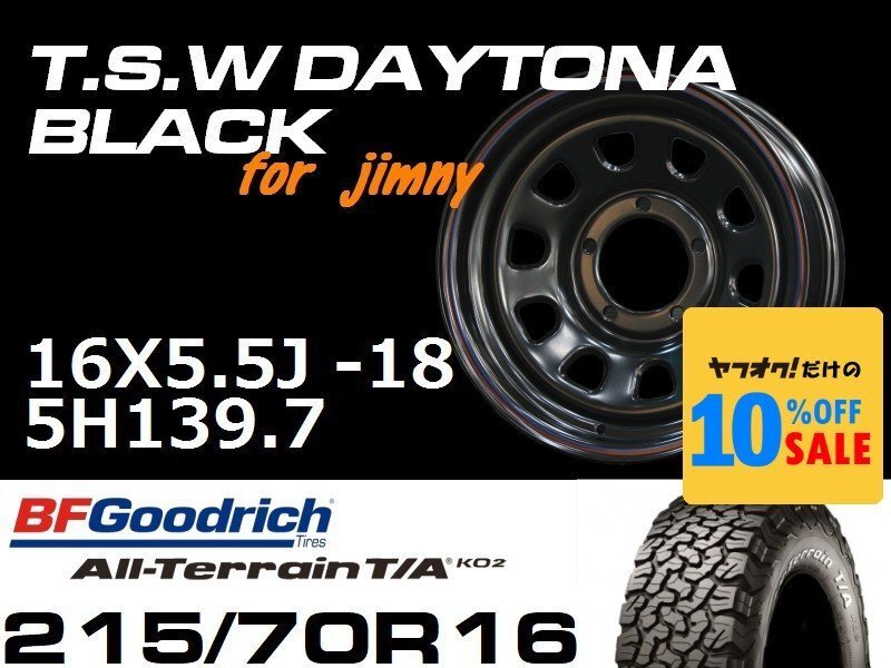 > 新型 ジムニー ホイール TSW デイトナブラック 16X5.5J-18 BF Goodrich All-Terrain T/A KO2 215/70R16 タイヤセット JB64 JB23などに