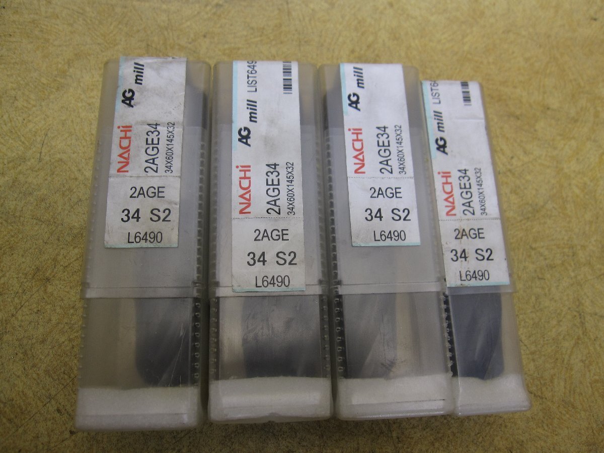 - *不二越 NACHI ハイススクエアエンドミル AG ミル2枚刃 2AGE34 中古4本 切削工具 ハイスピードスチール 側面加工 溝/ザグリ加工 エンドミル