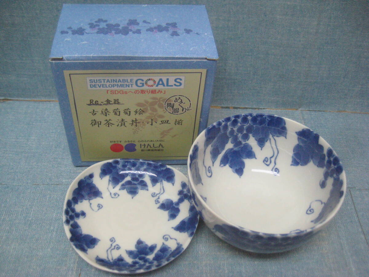 - ☆未使用品 Re-食器 古染葡萄絵 御茶漬丼・小皿揃 めぐり陶器 香川県信用組合 ノベルティ ☆