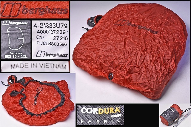 > BERGHAUS ★ バーグハウス ★ リュック レインカバー ★ 15-20リットル ★ 赤 ★ コーデュラ ★ CORDURA ★ 登山 ★ アウトドア ★ 中古品