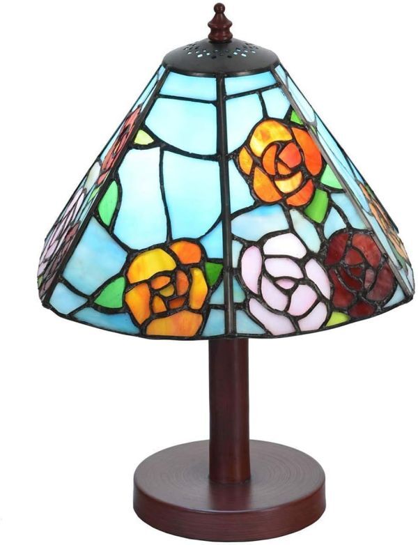 > Byeeee 薔薇 LED対応E12口金 ステンドグラス テーブルランプ スタンドランプ スタンドライト アンティーク おしゃれ ティファニー