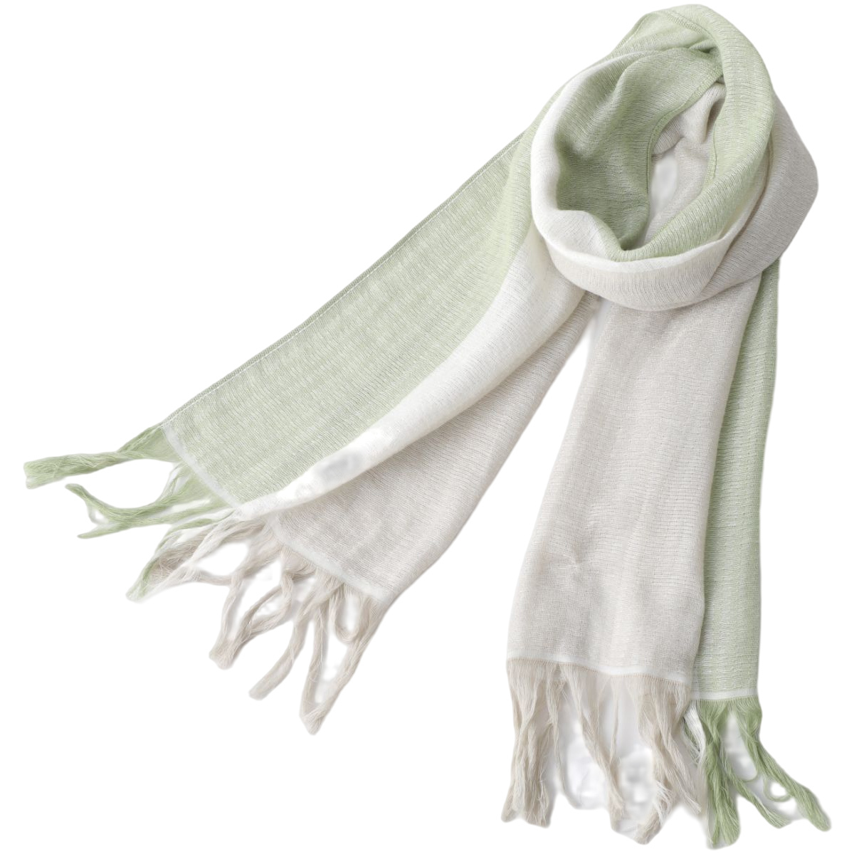 - コントラストがおしゃれな 今治タオル ラインカラー タオルマフラー 150×32cm 抹茶×ウス緑 コットン100% ふんわり軽やかな肌ざわり