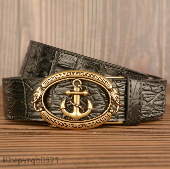 - ベルト 新品 レザーベルト メンズ いかりバックル 本革 オートロック式 幅 3.5センチ 柄物 紳士用 /黒