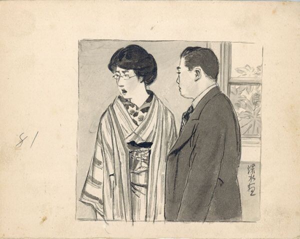 - 伊東深水画稿「女護の島 八十一」 墨 紙 サイン 15×19 Shinsui Ito