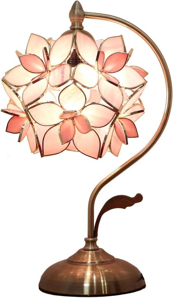 - Byeeee テーブルランプ アンティーク おしゃれ ステンドランプ ベッドライト プレゼント スタンド LED対応 ステンドグラス 照明 桜 赤