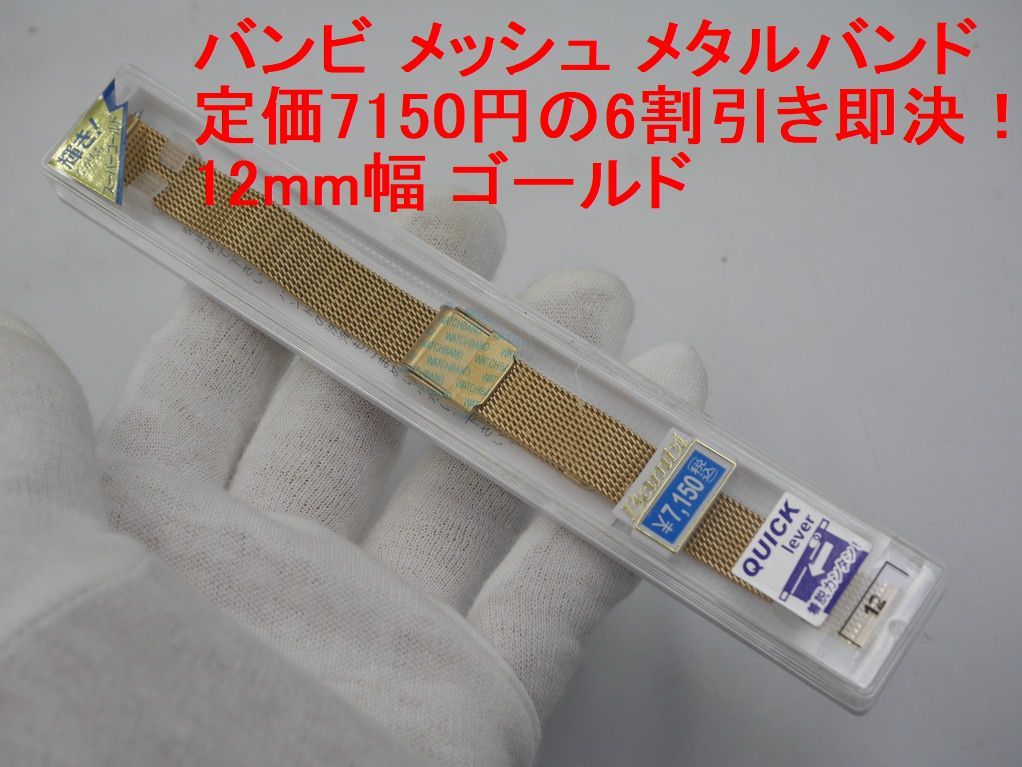 - 送料込み●新品●定価7150円の6割引き即決●バンビ 腕時計替えベルト メタル メッシュ 12mm幅 ゴールド