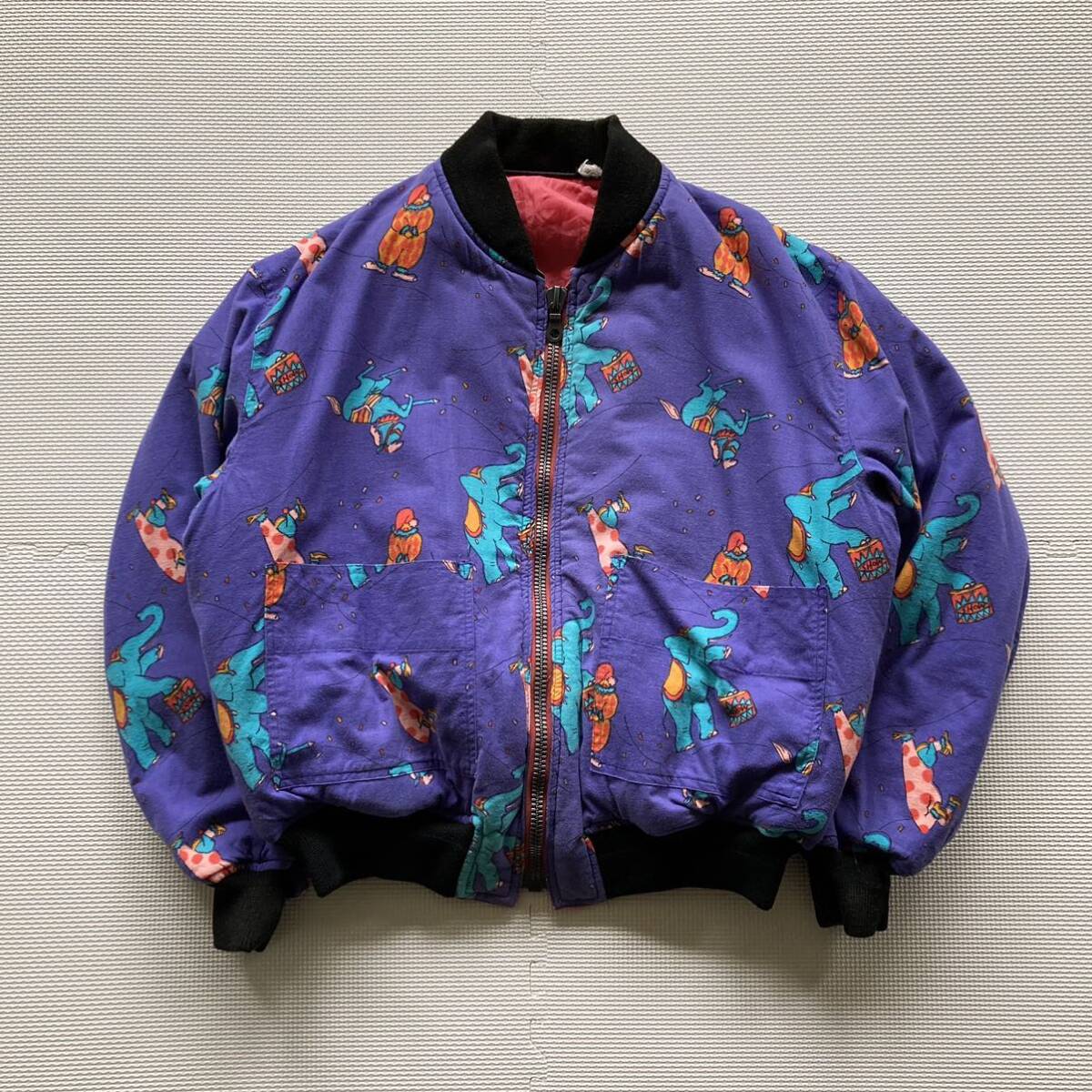 > 80s 当時物 HAKKA ハッカ ririZIP リバーシブル フライトジャケット 総柄 中綿