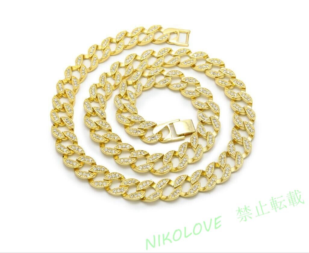 - 新品 男性 アクセサリー プレゼント ギフト ラインストーン ネックレス 18KGP ステンレス チェーン 高級 メンズ 極太喜平 LA151