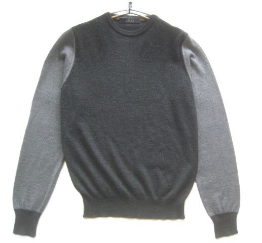 - 極上イタリア製!!ブイネック VNECK*美シルエット 切り替えデザイン メリノウールニットセーター 44 実寸S 濃灰×灰